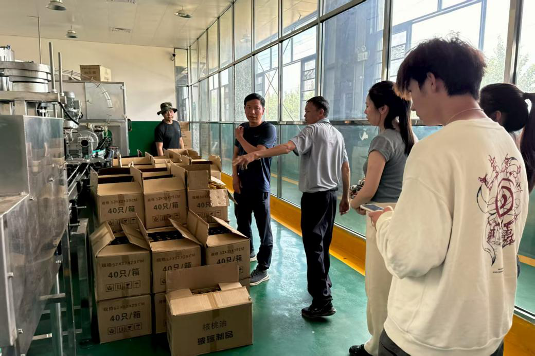 6月27日,实践团队走进昆明市东川区中山村,参观当地企业——云南东山油茶榨油厂。作为中山村规模最大的生产企业,该油厂依托当地丰富的菜籽、山茶、核桃等自然资源,构建起全自动化生产体系,实现农产品的深加工增值。团队成员近距离观察自动化生产线,与企业技术人员深入交流,深化了对“科技助农”的认识,感受到了企业家心系村民的情怀。此次实践搭建起理论与乡村振兴实践的桥梁,让青年学子对乡村振兴有了更深刻的理解,认识到科技创新在推动农业产业化发展中的重要作用。
