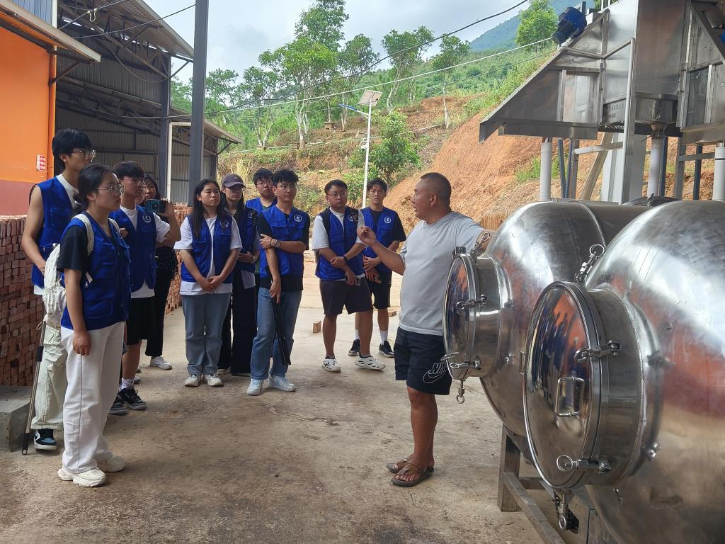 7月14日,实践团队来到临沧云佳咖啡有限公司。公司负责人亲自带领同学们深入生产车间,讲解咖啡分拣机器设备功能,介绍咖啡从筛选到烘焙的全生产流程。实践团队结合专业知识,交流探讨AI技术在咖啡分拣、品质管控中的应用可能,以科技视角为乡村咖啡产业升级出谋划策,探索数字助农新业态。