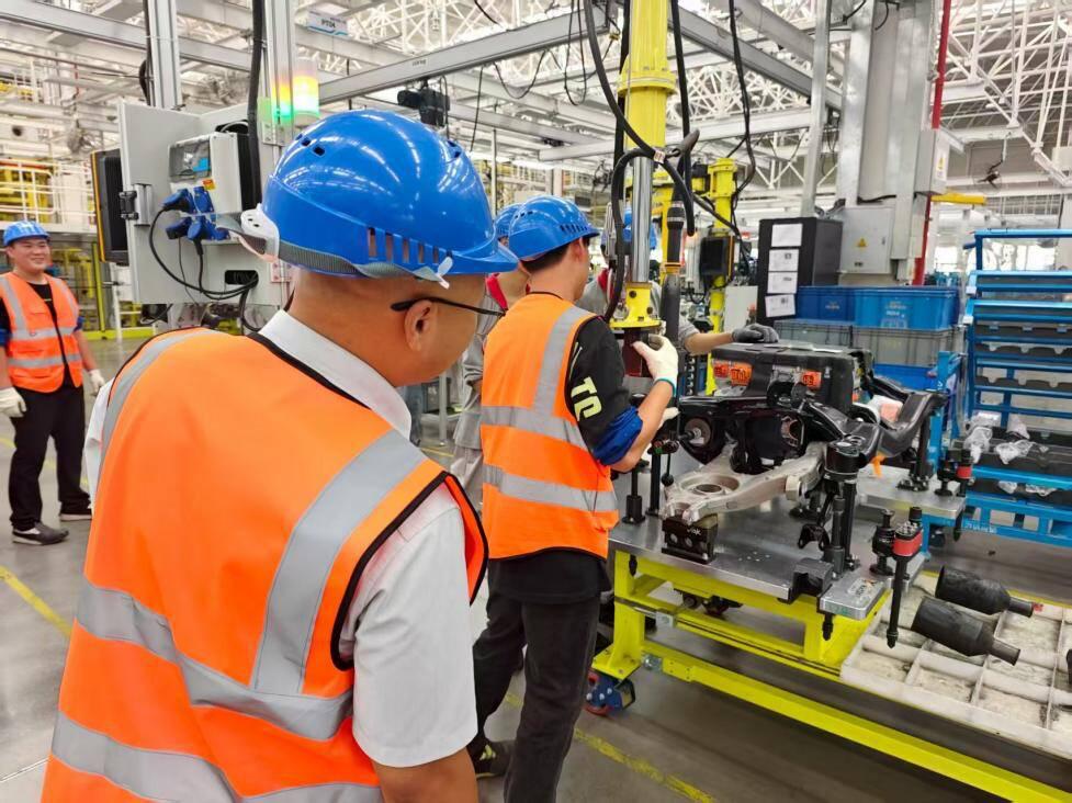 在奇瑞汽车总装车间,团队成员近距离观摩了自动化焊接机器人、AGV无人配送系统、数字化质量检测平台等先进技术应用。奇瑞工程师介绍,公司通过“工业4.0”标准打造智能工厂,整车生产效率提升30%,不良品率降低至0.5%以下。奇瑞技术研发中心负责人与团队开展座谈,重点介绍了奇瑞在混动技术、智能网联等领域的突破。团队成员结合所学知识,就“新能源汽车电池管理系统优化”“智能驾驶算法开发”等问题与企业专家深入交流。在工程师指导下,团队成员参与生产线调试、机械臂编程等实操训练,进一步掌握PLC控制、机器视觉检测等技术的实际应用。