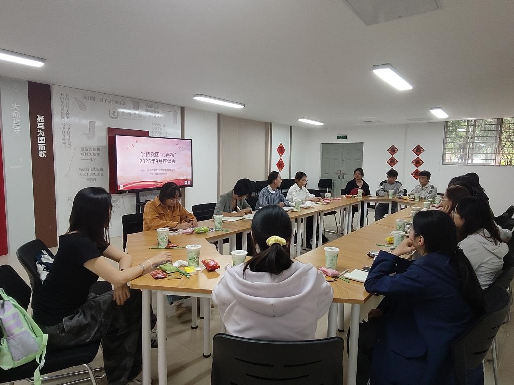 近日,学特学院在“一站式”学生社区党建文化悦读空间举办党团“心声桥”2025年9月座谈会。本次座谈会以“倾听青年心声”为起点,以“共筑发展之路”为目标。学特学院党委书记刘娟娟、团委书记谢燕以及20名团学代表齐聚一堂、深入交流,围绕学院建设发展与学生成长成才等核心议题建言献策,以坚定的政治担当切实履行育人使命。