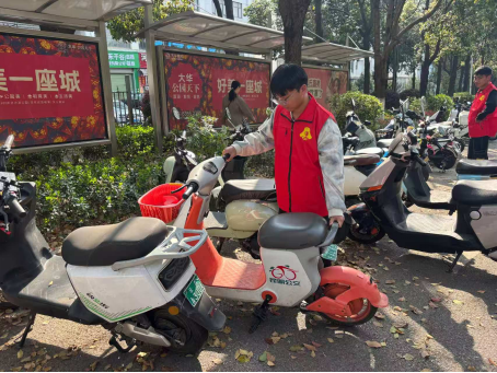 活动开始前,学院党委书记周义方对志愿者进行了简要动员,明确了活动区域、整治重点和安全注意事项。下午4时,志愿者们准时抵达指定区域,分组开展活动,有的将歪斜、倒地的共享单车逐一扶正,有的将零散分布、违规停放的车辆搬运至指定停车区域,有的对车辆进行统一摆放、整齐排列,确保车辆停放规范有序、朝向一致。面对部分占用盲道、消防通道和人行道的车辆,志愿者们耐心清理、规范挪移,及时消除通行障碍。在整治过程中,志愿者们还主动向过往师生、市民宣传文明骑行、规范停放的重要意义,倡导大家自觉爱护公共设施,遵守交通秩序,共同维护良好的出行环境。经过两个多小时的辛勤劳动,学校南门、西门周边原本杂乱无序的共享单车变得整齐划一,校园出入口及周边道路面貌焕然一新,通行环境更加顺畅整洁,得到了过往师生和周边群众的一致好评。